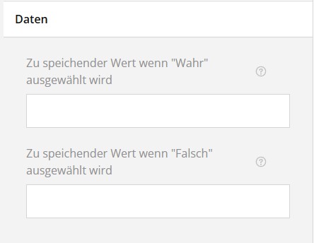 Der Standardwert für Nein (Bezeichner "Falsch") ist 0 und für Ja (Bezeichner "Wahr") 1. Diese Standardwerte können geändert werden, indem das Element Wahrheitswert ausgewählt wird und dann im rechten Menü auf "Daten" geklickt wird. Dort können für die "Wahr"- und "Falsch"-Optionen alternative Werte eingetragen werden.