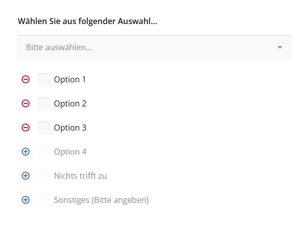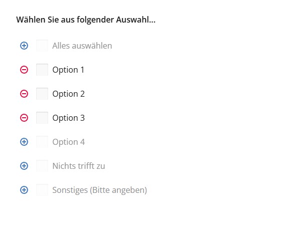 Auswahl Element Dieses Element ermöglicht die Auswahl einer oder mehrerer Optionen im Checkbox-Format.