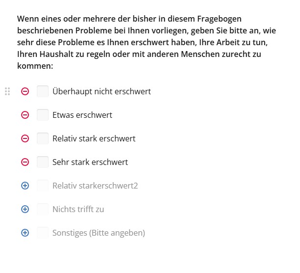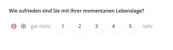 Bewertung Element Dieses Element eignet sich für einzelne Fragen, die eine Antwort auf einer Skala erfordern (z.B. Likert-Skala). Für mehrere Fragen, die auf derselben Skala beantwortet werden sollen, wird das Element "Matrix" empfohlen.