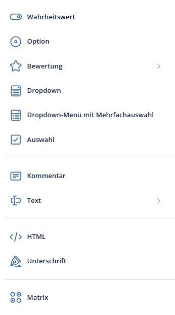 Beispiel Wahrheitswert Dieses Element erlaubt nur 2 Antwortmöglichkeiten ("Wahr oder Falsch") und eignet sich ideal für Ja/Nein-Fragen.