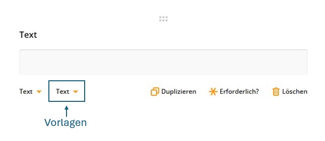 Text Das Element "Text" bietet zahlreiche Vorlagen zur Auswahl. Es kann als einfacher kurzer Text verwendet werden, dessen maximale Länge unter Test → Fragen → Maximale Antwortlänge festgelegt werden kann.